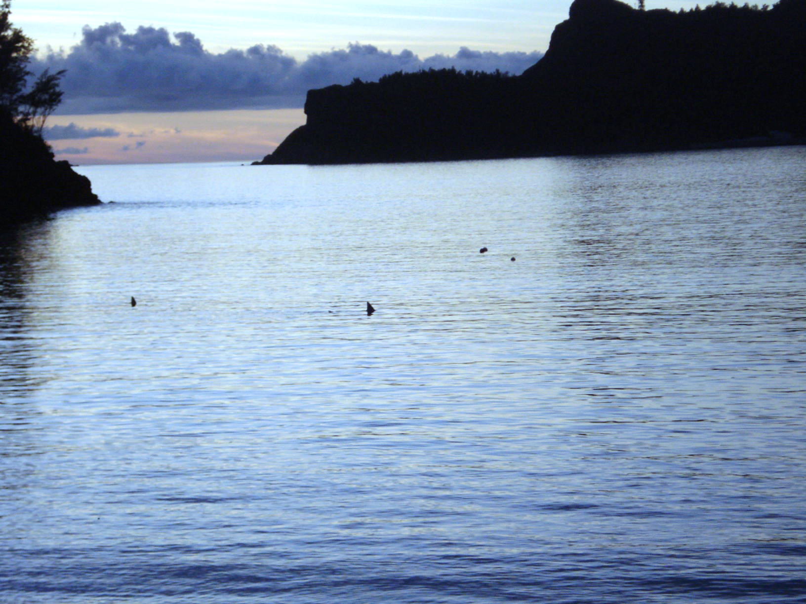 小笠原村父島の扇浦海岸で29日夕刻、大きな背ビレを海面に見せながら遊泳している10数頭のサメが目撃された。回遊していたのは、頭部が丁字形のアカシュモクザメやメジロサメなど12〜15匹が集まっていた。