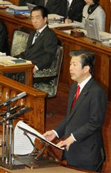 山口那津男代表(公明党)のは28日午前、参院本会議の代表質問で菅直人首相の政権運営を厳しく批判。「あなたにこの国の首相をもはや任せられないという国民の率直な声が高まりつつある」と退陣を求めた。公明党は昨日(27日)の衆院本会議でも井上義久幹事長が衆院解散か内閣総辞職を迫っており、菅内閣打倒の姿勢を鮮明にした。